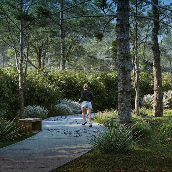 Este enfoque busca dotar al sitio de una identidad única, acentuando sus características naturales a través de recorridos diseñados para resaltar lo existente y crear pequeños bosques con árboles y arbustos.